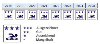 Als "EU Badegewässer" qualifiziert, wird die Qualität des Wassers nach europaweit einheitlichen Kriterien regelmäßig untersucht (Badegewässer-Monitoring). Dabei werden bestimmte Indikatorkeime, die Sichttiefe und Temperatur kontrolliert und als Badegewässerprofil bewertet.